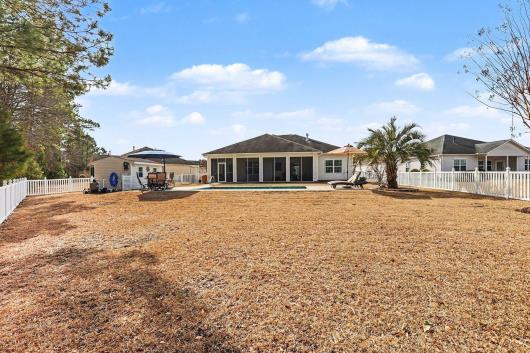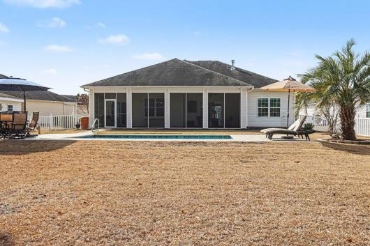 Welcome to this charming 3-bedroom, 2-bathroom home nestled in the desirable Arbor Glen community in Longs! Step inside to discover a modern kitchen equipped with stainless steel appliances, elegant granite countertops, and ample cabinet space to accommodate all your cooking essentials. The large open living and dining area features a beautiful tray ceiling, a cozy fireplace, and hardwood flooring, creating a warm and inviting atmosphere perfect for entertaining. Retreat to the spacious master bedroom, also boasting a tray ceiling, and enjoy the luxury of the master bathroom complete with dual sinks, a soaking tub, and a walk-in tile shower. All three bedrooms feature stylish LVP flooring, offering durability and easy maintenance. The guest bathroom includes a convenient shower-tub combo, perfect for residents and guests. This home also includes a dedicated laundry area with built-in cabinets for added convenience. The two-car side-load garage provides additional space for storage or a workshop, catering to all your needs. Relax and unwind on the screened-in porch, designed for comfort with a ceiling fan to keep the air flowing. Situated on a generous .44-acre cul-de-sac lot, this property is perfect for outdoor gatherings and activities. The fenced-in backyard features an inviting in-ground pool, providing the perfect getaway for those warm summer days. Don?t forget to take advantage of the community pool for even more relaxation! Arbor Glen is ideally located near some of the finest dining, shopping, golf, and entertainment options in the area, making it a prime location for both leisure and convenience. This home is not just a property; it's a lifestyle. Whether you're looking for a forever home or a vacation escape, this residence has it all. Don't miss out on the opportunity to make this stunning house your new home. Schedule your showing today!