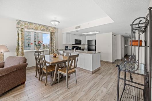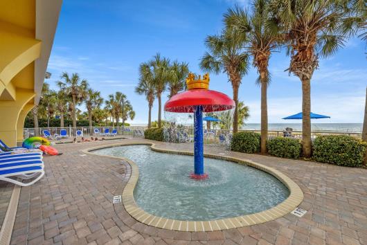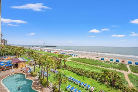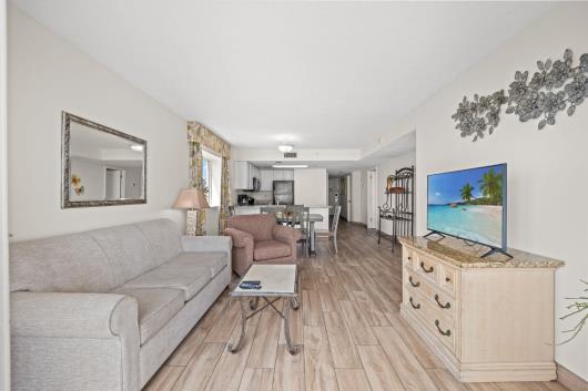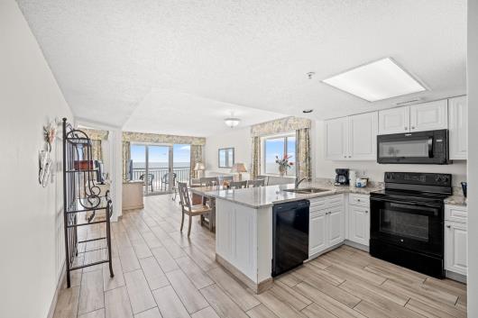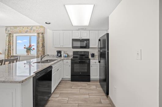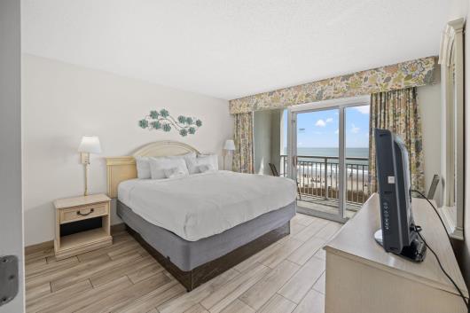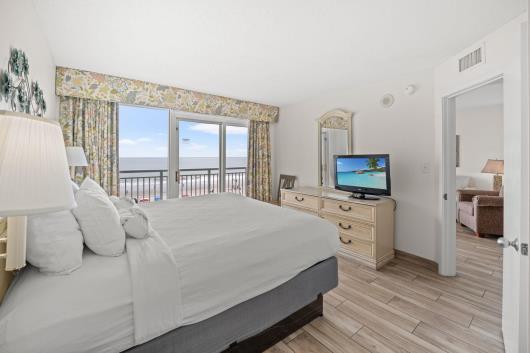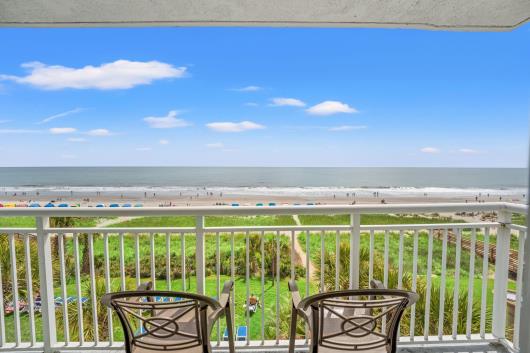 Enjoy sweeping views of the blue Atlantic Ocean.. This 3 bedroom/ 2 bath is the largest floor plan at Camelot & has updated ceramic tile flooring, granite countertops in kitchen and bathrooms. The living room & dining room furniture have also been upgraded. The large Master suite includes a King bed, balcony access and private full bath. The first guest room has 1 queen bed and the second guest room has two twin beds. Just bring your clothes and flip-flops, this condo is being sold fully furnished, including the washer & dryer. There are many activities and restaurants just a short walk away. Just one mile to Broadway at the beach. Camelot has indoor/outdoor pools, hot tubs, kiddie pools as well as a 200' lazy river. Plenty of outdoor seating and outdoor tiki bar in season. Lets not forget the fitness center. See you at Camelot by the Sea...The place you need to be.