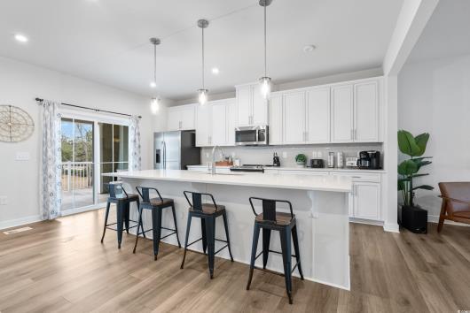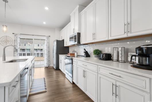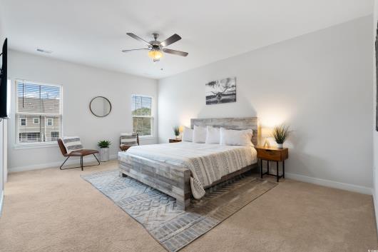 Welcome to Dye Estates Townhomes, an exclusive gated community nestled within the Barefoot Resort area of North Myrtle Beach. This stunning 4-bedroom, 3.5-bathroom townhome-style condo offers an exceptional choice for your primary or vacation home. Fully furnished with chic, modern pieces, all you need are your belongings and golf gear! Strategically located next to the Pete Dye Golf Course, this condo is a dream spot for golf lovers, providing quick and easy access to the green. Picture yourself effortlessly riding your own golf cart to start your game within minutes. With over 2600 sq ft of heated living space, the interior guarantees comfort for everyone. The open concept of the living area seamlessly blends into the kitchen and dining spaces, perfect for entertaining guests. Additionally, there's a convenient half bathroom nearby. The kitchen includes modern white cabinets, stainless steel appliances, and a beautiful tile backsplash. Just off the kitchen, an oversized private balcony awaits, overlooking the beautiful pond views, offering the perfect spot for outdoor dining and relaxation. Upstairs, the top floor hosts the large primary suite, along with two additional bedrooms, a full bathroom with dual vanities, a tiled tub/shower combo, and a laundry room equipped with a full-size washer and dryer. The primary suite boasts a generous walk-in closet and a spacious en suite bathroom, complete with dual vanity sinks, a tiled shower, and a separate water closet. The lower level features a versatile bonus room that can serve as a fourth bedroom. It includes two twin bunk beds, arcade games, and a full bathroom with a tile shower. This area also leads to a screened-in porch, which opens up to a peaceful outdoor space facing the pond. Additionally, this unit includes a 2-car garage, ideal for storing a golf cart, further adding to the convenience and luxury of this exquisite townhome. As an owner in Barefoot Resort, you will have access to a beautiful oceanfront cabana and a swimming pool located nearby. This condo is perfectly situated to explore North Myrtle Beach’s best attractions including the beautiful Atlantic Ocean, Barefoot Landing, shopping, dining and entertainment. Short Term Rentals Welcome! Schedule your tour today!