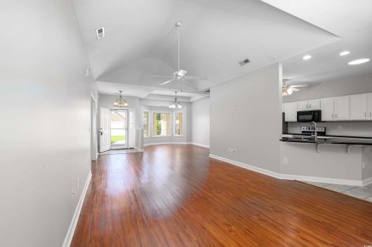 Annual rental available now! Located in Ashton Acres, this 3 bedroom, 2 bath home is bright, spacious and is move in ready. The eat in kitchen boasts beautiful countertops, a breakfast bar, white cabinets and SS appliances. The kitchen leads to the separate dining area which features a bay window and tray ceiling and also overlooks the main living area with vaulted ceilings. The primary bedroom has a walk in closet and private ensuite with an upgraded walk in shower and double vanity. There are 2 other bedrooms and a full bath as well as a laundry room and 2 car garage. The large backyard features an oversized covered screened lanai, patio and storage shed. This outdoor living space is the perfect place to entertain family and friends. Ashton Acres is located close to dining, shopping, healthcare and is just a short drive to the beach! Don't miss this one.