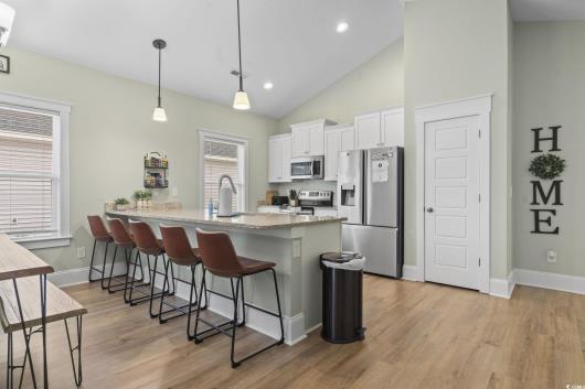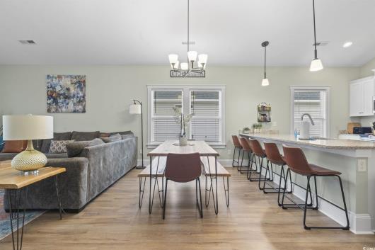 Welcome to 4363 Bayshore Drive in Little River, SC, a beautifully maintained like-new turnkey home offering three bedrooms and two baths with the added benefit of no HOA restrictions. Perfectly positioned on the marsh and less than ten minutes from the beach, this residence combines coastal charm with modern convenience. The open-concept design is filled with natural light and highlights stylish vinyl plank flooring, a spacious area for dining, a large family room ideal for gatherings, and a thoughtfully designed kitchen that balances function and style. Granite countertops, pendant lighting, stainless steel appliances, and an oversized island make the kitchen a centerpiece for both casual dining and entertaining. The screened-in porch provides a peaceful retreat with serene marsh views, creating the perfect spot for morning coffee or evening relaxation. Whether you are looking for a primary residence or an investment property, this home offers comfort, location, and timeless appeal, making it an opportunity you will not want to miss. Schedule your showing today.