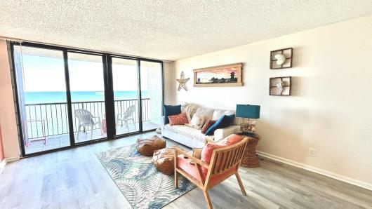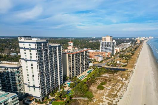 Whether you’re looking for a primary home on the ocean, an income-producing investment, or seasonal getaway, condo living at Beach Colony Resort is sure to check every box on your lifestyle list. This 2 bedroom, 2 full bath END UNIT on the 19th floor features a spacious kitchen with ample storage and newer Quartzite countertops ready for buffet entertaining, white-painted cabinetry with updated hardware, newer tiled backsplash, a stylish beverage bar, and shiplap accents for that coastal inspired touch Featuring an open concept living space, you will appreciate the gracious flow from kitchen to dining area to living room that leads up to your 11’ sliding doors and those oh-so-gorgeous ocean views from your double width balcony. Your primary bedroom boasts enough space for a California king bed, as well as an office nook or sitting area. And it doesn’t stop there: a walk-in closet (with owner’s closet), a 4-piece ensuite with double sinks, and wall–to-wall windows with balcony access makes this room your very own private sanctuary. For guests, the second bedroom offers easy access to another 4-piece bath and laundry from the hallway. An all-inclusive HOA fee means no extra bills and worry-free usage. Now let the fun begin! Beach Colony Resort is packed with amenities to enhance your oceanfront lifestyle. Enjoy indoor/outdoor heated pools, hot tubs, and a heated lazy river, along with a spacious poolside lounging area. Additional resort highlights include a seasonal outdoor bar with DJ, Cannonballz Bar & Grill, a fitness center, games room, meeting rooms, seasonal coffee shop, boutique, mini mart, guest laundry facilities, and underground bicycle storage. You’ll also be close to numerous dining and shopping options, golf, and entertainment just minutes away. Beach Colony Resort is your complete, 5-star oceanfront condo located in Myrtle Beach’s “Golden Mile” area known for its quieter, neighbourhood style beach experience with upscale homes, traffic-calmed streets, and less crowded beaches. Are you ready to move in? Book a showing today!