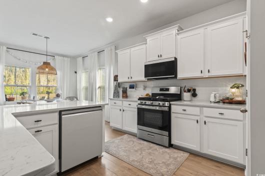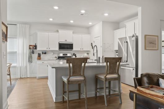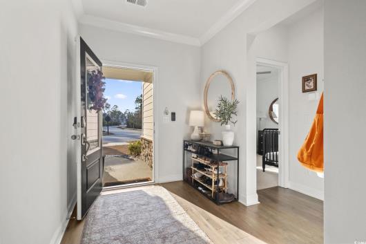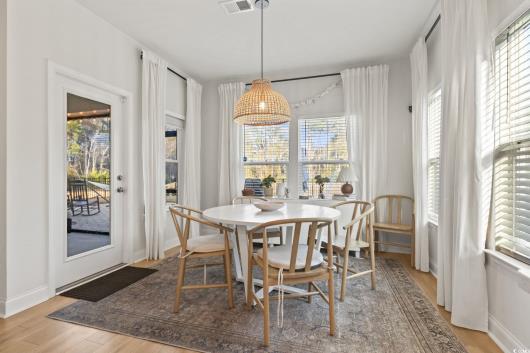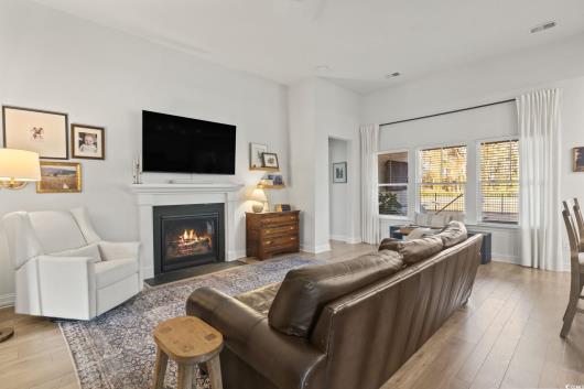 PRIME LOT IN BELLE HARBOR - MARKET COMMON!! Discover a rare opportunity in Belle Harbor—one of the few homes offering true privacy on a prime lot in the heart of Market Common. This beautifully upgraded home blends comfort, style, and seclusion in a way that’s nearly impossible to find in this community. Inside, the open-concept layout is filled with natural light and enhanced with thoughtful upgrades throughout: quartz countertops, custom pantry and closet shelving, new stainless appliances, French doors on the flex room, tiled master shower, and a cozy fireplace. Every detail, from fans in all rooms to plantation shutters and blinds, adds to the home’s warmth and livability. Step outside and you’ll immediately feel the difference this lot offers. Enjoy peaceful mornings and private evenings on your screened-in porch, or entertain around the patio and natural-gas firepit. The fenced yard, professional landscaping, irrigation, widened paver driveway, and exterior lighting create a polished, inviting outdoor space that feels like your own retreat. This WiFi Smart Home also includes garage ceiling storage, attic pull-down access, and a gas line for grill hookup. Belle Harbor residents enjoy resort-style amenities and a short golf cart ride to Market Common dining, shopping, parks, and the beach. Homes with this level of privacy rarely hit the market - and never last long. This is your chance to own one of Belle Harbor’s most desirable lots.