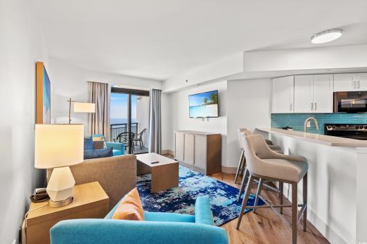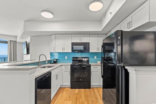 ABSOLUTELY STUNNING!! 3 bedroom, 3 full bathrooms, 14th floor, END UNIT condo inside the voted "Best of the Beach" Caribbean Resort. Recently UPDATED decor with new furniture, paint, and LVP flooring throughout the main living space, kitchen, and all bedrooms. STAINLESS STEEL appliances and GRANITE countertops in kitchen and bathrooms. 2 private balconies with amazing views and large picture windows in bedrooms keeping them light and bright. This unit is super spacious and accommodates 12 guests making it the most popular and requested floor plan among golfers! This unit has its own WASHER/DRYER and the HVAC was replaced in2016. HOA DUES include water/sewer, cable, internet, electric, pest control, trash, insurance... even HO6 INSURANCE and more!!Resort amenities include over 14 pools, a lazy river, indoor and outdoor hot tubs, on-site food and beverage, in-room dining, fitness room, gaming areas, and the on-site Mist Spa for total relaxation. Walk across the street to Ben & Jerry's Ice Cream, Starbucks, or next door to the award winning Sea Captain's House oceanfront restaurant. The Caribbean Resort is also located near top rated family entertainment such as Broadway at The Beach, Myrtle Beach Sky Wheel, Top Golf and more!