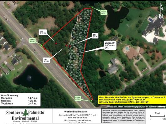 Prime commercial lot with 275 feet of road frontage, providing great visibility. Zoned CC, which allows for many commercial uses, including restaurants, medical offices and retail. 2.87-acre lot with approximately 1.59 acres of wetlands. Plans for medical offices are available upon request and OCRM approval is expected to be received by 12/31/2025.