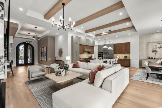 The Opal Model at Grande Dunes offers expansive living and refined coastal luxury, with 5,499 total square feet including 3,870 heated square feet, four bedrooms, four full baths, and two half-baths. At the heart of the home, the great room showcases soaring ceilings and a 74-inch electric fireplace, flowing effortlessly into the chef’s kitchen, prep kitchen, and casual dining area. A spacious bonus room and private den add versatility for entertaining, relaxing, or working from home. The owner’s suite is a serene retreat with a spa-inspired bath featuring a freestanding tub and an oversized walk-in closet. Outdoor living is elevated by a 650-square-foot lanai and cabana, with available options for a pool, spa, and outdoor kitchen—ideal for gatherings or peaceful evenings at home. With more than 700 square feet of garage space and thoughtful finishes throughout, The Opal perfectly blends modern luxury, comfort, and functionality. Located in Myrtle Beach’s premier coastal community, Grande Dunes, this 2,600-acre master-planned development stretches from the Atlantic Ocean to the Carolina Bays Preserve and is unmatched in amenities and lifestyle. Homeowners enjoy exclusive access to the 25,000-square-foot Ocean Club, offering fine dining, oceanfront pools with food and beverage service, meeting spaces, and year-round activities. Additional community features include two championship 18-hole golf courses, multiple on-site restaurants, a deep-water marina, Har-Tru tennis courts, and miles of biking and walking trails. Call today to schedule your private tour of this exceptional home.