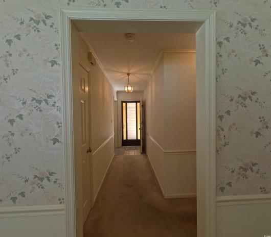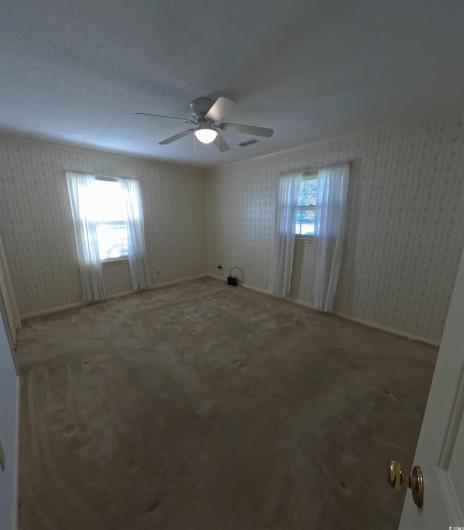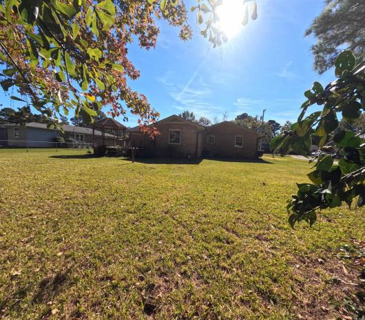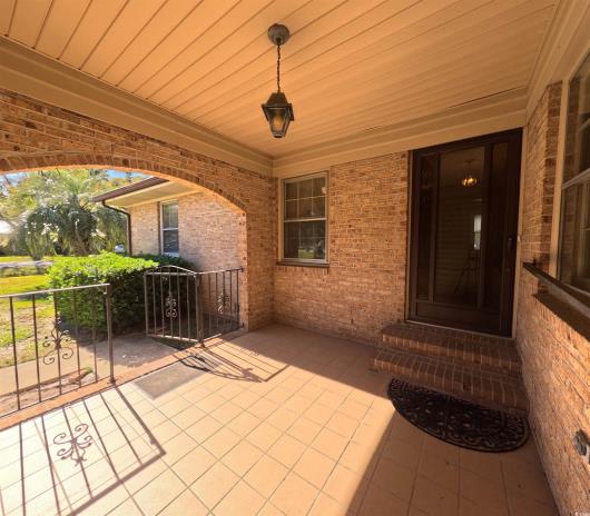 This full brick 3 Bed, 2 Bath ranch, with inviting covered entryway porch is situated on a large Homesite with wooded privacy in the back of the property. Bring everyone together in this oversized family room, approximately 14' x 30'. The separate dining room provides a nice space for meals and is conveniently located off the kitchen with ample oak cabinetry. The large wooden deck and gazebo in the backyard is a perfect outdoor space, especially with the porch swing frame in place, ready for a swing to unwind. Leaf guard gutters will help keep maintenance low. Hurricane shutters for the picture window and patio door. The 8' x 12' utility building at the back is also a bonus for storage, keeping the garage or living spaces less cluttered