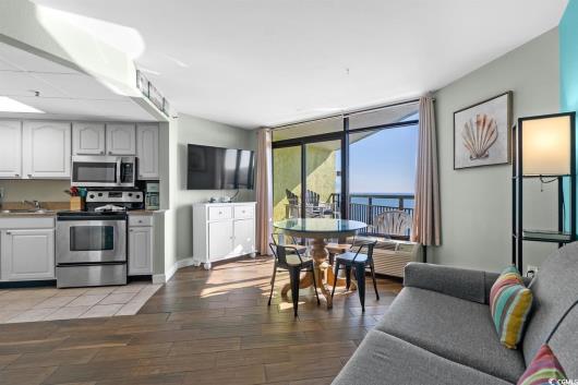 Welcome to this beautifully renovated ocean view condo, perfectly positioned at the end of Myrtle Beach’s prestigious Golden Mile. From the moment you walk in, you're greeted with breathtaking views of the ocean—especially stunning at sunset. This move-in ready unit features a brand-new stainless steel stove and microwave, two smart TVs for your entertainment, and two brand new HVAC units for year-round comfort. The building offers a peaceful setting while being just minutes from all the excitement Myrtle Beach has to offer, including top-rated restaurants, shopping, golf, and attractions. Whether you're looking for a vacation getaway, investment property, or full-time beachside living, this condo delivers the ideal blend of style, convenience, and location. Don’t miss your chance to own a piece of paradise with one of the best views on the???????????????????????????????????????? coast.