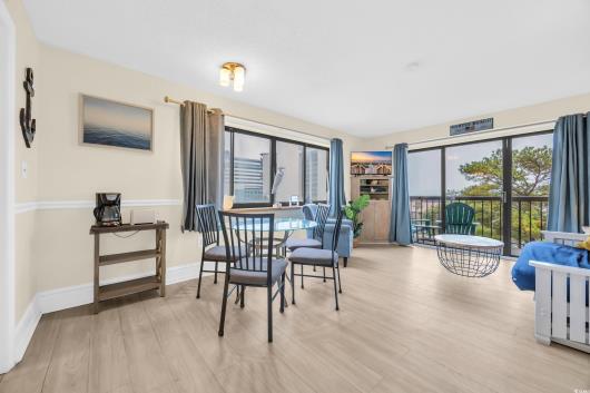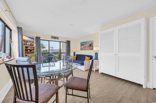 Don’t miss this ocean-view end-unit condo featuring 1 bedroom, 1.5 bathrooms, and plenty of natural light from extra windows. Enjoy stunning ocean views right from your private balcony. The spacious bedroom offers 2 queen beds, while the living area includes a Murphy bed, pull-out sofa, dining area, and balcony access—perfect for hosting family or guests. The kitchen comes fully equipped with a refrigerator, stove, range, and all the essentials for convenience. Located in Ocean Dunes, this building provides 24/7 secured access, a community pool, and is just steps away from the beach. Whether you’re looking for a vacation rental investment, second home, or full-time residence, this condo offers the perfect coastal getaway with unbeatable views and amenities.
