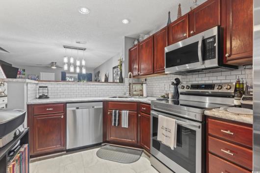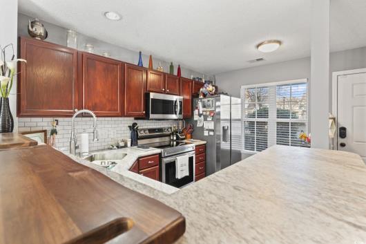 Move right into this beautifully updated townhome and start enjoying all that the area has to offer. This truly "like new" meticulously maintained home is a MUST SEE! Just about everything in the entire unit has been modernized over the past few years. A big plus is that there is no carpeting; the flooring throughout the entire home is easy to care for LVP and tile. Both bedrooms are located on the second floor and have renovated ensuites, with the primary bathroom featuring a walk-in shower with a stylish tile surround. The entire interior of the unit has been painted, and the kitchen has newer appliances and premium Formica countertops with a seamless double sink. Other bonuses are the blinds, ceiling fans and comfort height toilets. The downstairs 1/2 bath has been updated with beautiful tile, beadboard and fresh paint and the lanai has been upgraded with LVP flooring and special pet screening. The community has a nice pool to enjoy, and you will love being close to all of the great shopping, dining and nightlife opportunities on 501 and Carolina Forest. As an added bonus, this home is less than 20 minutes to the beach and airport for easy access. Call today to schedule your personal showing; you will love what you see!!