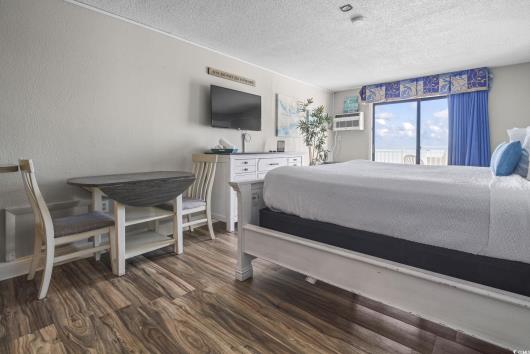 Experience stunning, unobstructed ocean views from this beautifully updated 11th-floor efficiency condo, ideally located on the highly desirable south side of the Sea Mist Resort in Myrtle Beach. This upper-floor unit offers some of the most breathtaking panoramic water views in the entire building, perfect for owners and guests who want to truly enjoy the coastline. Step inside and you'll immediately notice the fresh, modern feel. The condo has been updated with new flooring and fresh paint completed in February 2024, and it features coastal-inspired décor, stylish furnishings, and a bright, welcoming atmosphere. The full kitchen is equipped with stainless steel appliances, including a refrigerator, range, and microwave, making it ideal for both weekend getaways and extended stays. The bathroom has been improved with a new vanity, a resurfaced tub completed within the past year, and a toilet that is less than six months old. The living space is exceptionally functional, offering a King bed, a Queen sleeper sofa, a dining area, and a brand-new TV, all arranged to maximize comfort and usability. Slide open the balcony door and step onto your private outdoor retreat, where sweeping oceanfront views create the perfect backdrop for your morning coffee or relaxing evenings at sunset. Whether you're searching for a personal beach escape or a strong income-producing short-term rental, this fully furnished condo is completely turnkey and ready to enjoy. The comprehensive HOA fee covers water, cable, internet, electricity inside the unit, building insurance, landscaping, pool access, trash service, and common-area maintenance, providing truly hassle-free ownership. Don't miss your chance to own a beautifully updated Oceanview condo in one of Myrtle Beach's most popular resorts. Schedule your private showing today!
