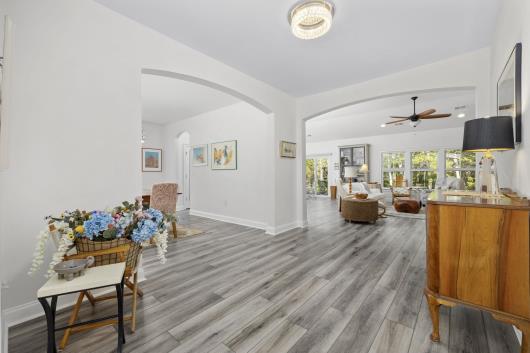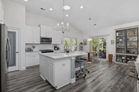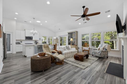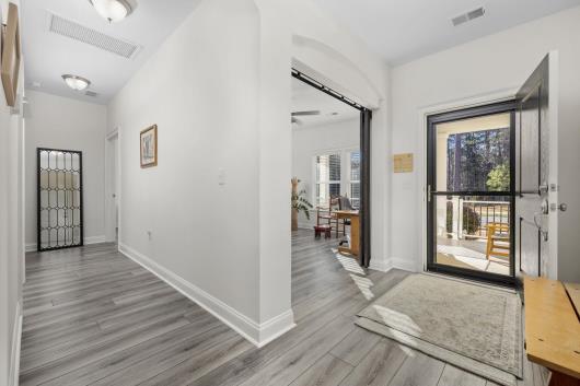 OPEN HOUSE!!! Saturday February 7th, 12 Noon to 2 PM NEW Dramatic Price Improvement!!! Don’t miss this rare opportunity to own a better-than-new 3–4 bedroom home in the highly sought-after The Estates at Withers Preserve – Market Common, a natural gas community of only 42 select home sites nestled within a residential enclave offering the largest and most private home sites in the village-style, master-planned community of Market Common. This home is surrounded by permanently protected woodlands in both the front and rear, ensuring unmatched privacy, serene views, and no future development. This exceptional residence embodies modern coastal elegance inside and out. An extra-wide foyer entry with extended sitting area creates a welcoming first impression. Interior features include soaring cathedral ceilings and a gourmet kitchen with pantry and generous center island accented with a glass-tiled kickplate, soft-close cabinetry, a large stainless-steel undermount sink, custom tiled backsplash, gas stove, refrigerator, and all-new pendant and under-cabinet lighting. A natural gas fireplace, finished with glass tile matching the center-island kickplate, provides a warm and inviting focal point, while solar tubes in the family room and kitchen deliver abundant natural light. Entertain with ease in the roomy breakfast nook or the formal dining room, tastefully connected to the kitchen by an arched entryway. There is no builder-grade carpet—wide-plank laminate flooring and porcelain tile flow throughout the entire home, complemented by all-new modern, elegant light fixtures. The spacious primary suite features a spa-like en-suite bath with soaking tub, tiled glass shower with rain shower head and seat, double-sink vanity, linen closet, and a deep walk-in wardrobe closet. A separate laundry room includes a wash sink and additional storage cabinetry. Two generously sized guest bedrooms are tucked away along a spacious hallway, offering privacy and convenient access to a full bath with custom porcelain tile surround. Upgraded ceiling fans in all bedrooms and the living room provide year-round comfort The owner has installed custom barn-door-style dual sliding frosted glass doors to create privacy for the flex space—ideal for a home office, den, study, library, or bonus room. A sliding glass door opens to a paved patio running the entire length of the home and a private wooded retreat, perfect for enjoying South Carolina nature and birdlife. The two-car garage includes pull-down attic storage and additional shelving. Manicured landscaping and attractive curbscaping are enhanced by an irrigation system, outdoor landscape lighting, and paved accent driveway, all complemented by a large covered, gated front porch—ideal for relaxing. All windows are hurricane-rated, eliminating the need for bulky or expensive hurricane shutters. The owner has also purchased HVAC service and home maintenance plans, along with a home warranty. The community offers extensive walking paths and a common ground walkway to a serene pond. Residents enjoy the rare convenience of top-ranked schools and golf cart access to Market Common shopping, dining, athletic fields, entertainment, scenic lake parks, and the beach. Optional access to the Amenity Center Complex includes a 7,000 sq. ft. resort-style pool, two spas, two enclosed toddler pools, 430-ft lazy river, 2,000 sq. ft. pool house with kitchen, fitness center, and locker rooms with showers. Better than new—without the wait for construction. Homes offering this level of privacy, location, and quality are exceptionally rare. Schedule your private showing today to experience the lifestyle you’ve been waiting for. Contact listing agent Bruce Robinson or your buyer’s agent for a private tour. Buyers and agents to verify all MLS information, including square footage, lot size, and HOA details.