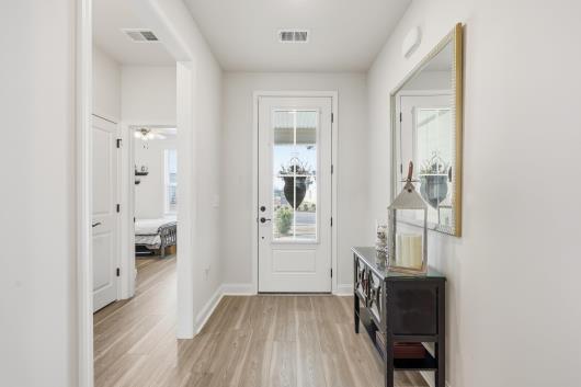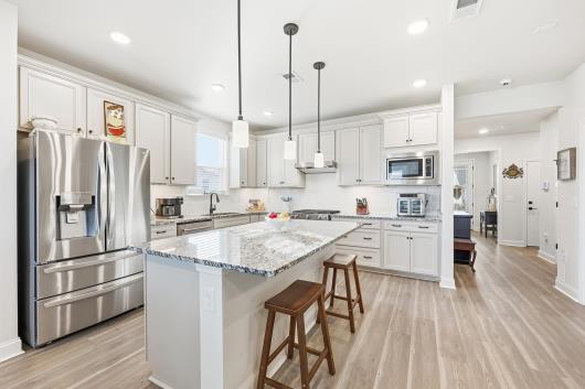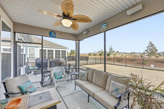 Welcome to 1206 Coneflower Way, a beautifully designed 3-bed, 2-bath ranch home perfectly positioned on a private, fenced lot in the award-winning Del Webb North Myrtle Beach community. With thoughtful upgrades; LVP flooring throughout, tankless hot water heater, natural gas community, black gutters, screened in porch with extra patio area for grilling ideal spaces for living and entertaining, this home embodies relaxed coastal comfort just moments from the beach. Step inside to an inviting open layout where the gourmet-style kitchen anchors the heart of the home. Featuring modern cabinetry, stainless appliances, and a central island, this space flows seamlessly into the bright living room and dining areas — perfect for everyday living or hosting friends. The Carolina room extends the living space with abundant natural light and transitions effortlessly to the screened-in porch, creating a relaxing indoor-outdoor lifestyle. Overlooking the fully fenced backyard, this setting adds privacy and year-round enjoyment in a peaceful setting. Retreat to the spacious owner’s suite with trey ceiling featuring a spa-like bathroom with an expansive walk-in tile shower and upgraded double vanities — a perfect blend of style and function. Two additional bedrooms offer flexibility for guests, hobbies, or a home office. Fully size laundry room with upgraded tile flooring. This exceptional home is part of the vibrant 55+ Del Webb community, where resort-style amenities and a full calendar of social activities are curated by a full-time Lifestyle Director. Residents enjoy: Indoor lap pool and outdoor saltwater pool with two hot tubs, pickleball courts, bocce courts, putting green, fitness center and walking trails, Monthly events and clubs for active, social living. Sidewalks on both sides of every street for strolls and neighborly connection. Low-maintenance lifestyle with proximity to beaches, dining, golf courses, and more. Located just minutes from Crescent Beach access, community recreation centers, shopping, dining, and medical facilities, this home offers the perfect blend of coastal charm and active adult convenience.