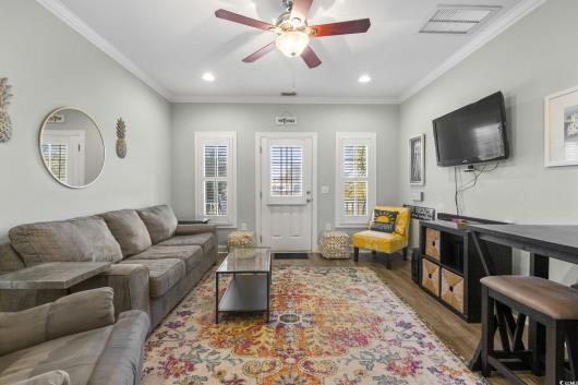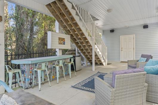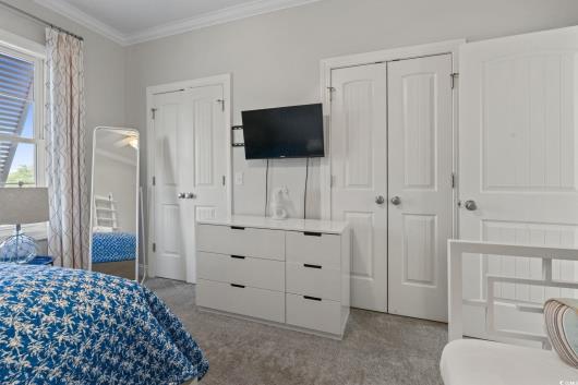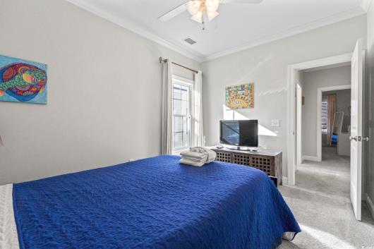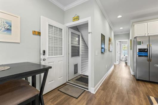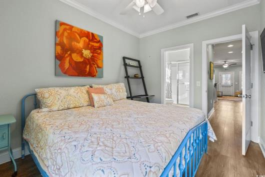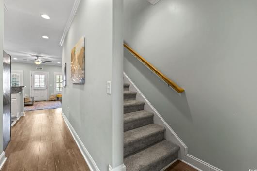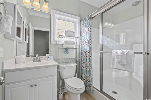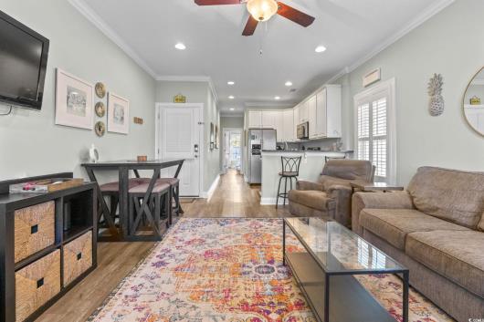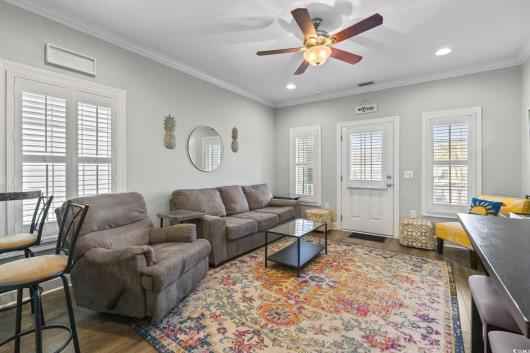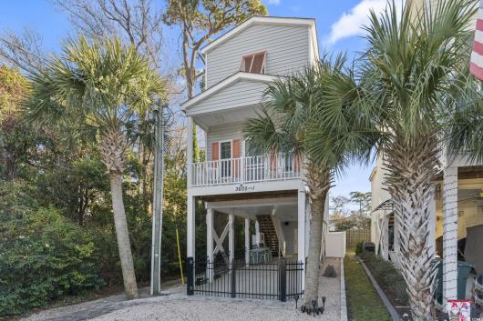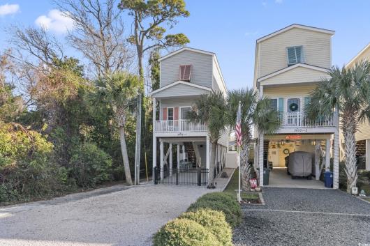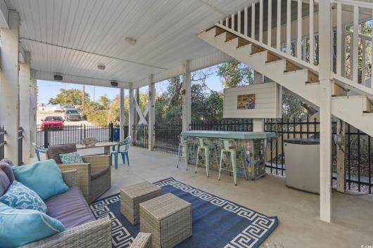 3-bed, fully furnished,raised beach home with no HOA, balcony, and golf cart ride to the beach! Looking for a beach home close to the ocean with no HOA and room to relax and entertain? This 3-bedroom, 2-bath raised beach - style home offers the coastal lifestyle many buyers search for near Myrtle Beach and the Grand Strand. Located just a short golf cart ride to the beach, this home blends comfort, flexibility, and easy coastal living. When you enter the main living space, you are welcomed by luxury vinyl plank flooring, neutral paint, recessed lighting, and crown molding, creating a clean and inviting feel. Natural light fills the home, making mornings feel bright and calm. Just off the living area is a 14x4 balcony with a ceiling fan, perfect for enjoying your morning coffee, reading a book, or unwinding in the evening. The kitchen is designed for both daily living and entertaining, featuring 42-inch white cabinets, granite countertops, stainless steel appliances, and a breakfast bar. The primary bedroom is located on the first living level and includes a Jack-and-Jill style bathroom that also connects to the hallway, offering convenience for guests. Upstairs, you will find two additional guest bedrooms with carpeting, ceiling fans, and crown molding, along with an updated full bathroom. The ground level offers open space with recessed lighting, ideal for outdoor gatherings, hobbies, or relaxing after a beach day. The lot is fully fenced, providing added privacy with room for a small pool or spa, and includes a 14x6 attached storage area for beach gear, bikes, or tools. With no HOA, there are no community restrictions, making this home a great option for a primary residence, second home, or investment property. This raised beach home is conveniently located near shopping, dining, entertainment, and local attractions including Barefoot Landing, with easy access to main roads for commuting around the Grand Strand. Whether you are enjoying quiet mornings on the balcony or spending your days at the beach, this home offers a relaxed coastal lifestyle in a highly desirable location. Measurements are not guaranteed and are the buyer's responsibility to verify.