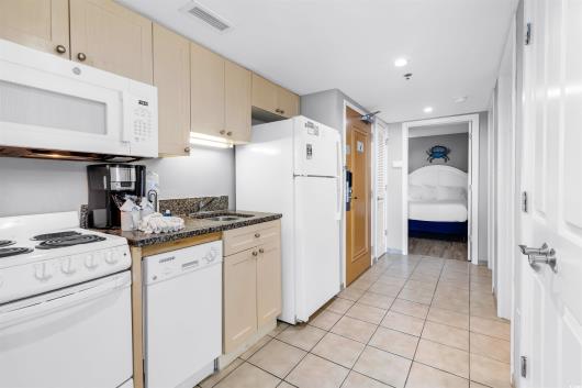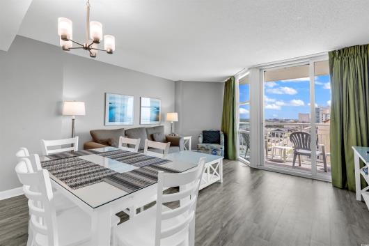 Seaside Inn Resort is located in the desirable Crescent Beach section of North Myrtle Beach. This two-bedroom, two-bath condo with its open concept living area sits just steps from the Atlantic Ocean. With its panoramic view of the ocean, spacious bedrooms, and large dining room, it is easy to sit back and unwind as you watch the waves roll in