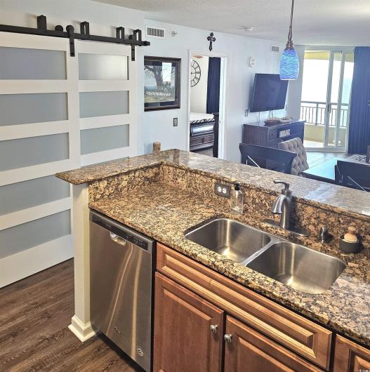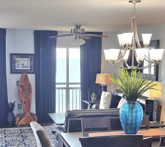 Coastal living becomes reality in this stunning oceanfront condo at Tilghman Beach and Golf Resort, located in the desirable Cherry Grove section of North Myrtle Beach. Perched on the top 15th floor, this spacious unit offers sweeping views up and down the shoreline, with an oversized private balcony perfect for enjoying sunrises, sea breezes, and evening skies. Step inside to breathtaking ocean views visible from the moment you enter. The unit is freshly painted, meticulously maintained, and thoughtfully designed throughout. Fully furnished, it features three large bedrooms, each with its own on-suite bathroom showcasing modern fixtures and spa-inspired tilework. The primary suite includes a walk-in shower, generous closet space, and direct access to the balcony for private, unobstructed views of the ocean and sky. The upscale kitchen offers solid wood cabinetry, granite countertops, and stainless steel appliances-all with ocean views. A dedicated dining area with an elegant light fixture adds warmth and functionality. The living room opens directly to the balcony, allowing natural light and ocean air to fill the space. Additional features include an energy-efficient HVAC system, dishwasher, refrigerator, microwave, and full-size washer and dryer. Enjoy easy access to local restaurants, cafes, entertainment, pier walking, boutique shopping, and seasonal festivals-all just moments away. This unit offers the perfect blend of luxury, location, and lifestyle. Remember Opportunities Don't Go Away They Just Go to somebody Else!