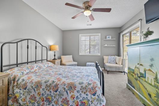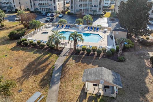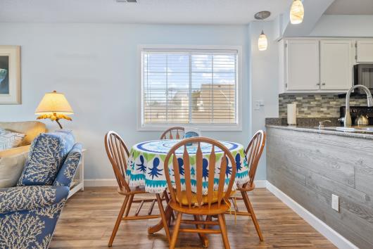 Welcome to this well-maintained and fully furnished 2-bedroom, 2-bath condo in the desirable Tilghman Shores community, just steps from the beaches of Cherry Grove. This second-floor end unit offers abundant natural light and a comfortable open living plan throughout. The kitchen features granite countertops, tile backsplash, pantry, and breakfast bar, providing both style and functionality. Enjoy the four-season room overlooking peaceful water views — ideal for morning coffee or evening relaxation year-round. The primary suite offers private access to the four-seasons room and an en-suite bath, while the second bedroom and adjacent full bath complete the layout. Offered fully furnished, this property is well-suited as a primary residence, vacation retreat, or investment opportunity, with short- and long-term rentals permitted. Community amenities include an outdoor pool, hot tub, grilling area, and scenic pond views. Conveniently located near dining, shopping, golf, and beach access, this condo provides easy living in North Myrtle Beach. Ask your agent about lender incentives!