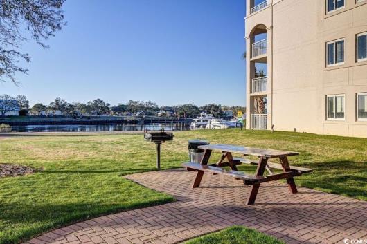Available again after rental season withdrawal. Primary residence, dream vacation home, or proven investment with 5-star reviews—this luxurious, spacious 2BR/2BA villa is located in the gated Yacht Club Villas at Barefoot Resort and comes fully furnished and turnkey. Beautifully renovated and professionally decorated, the villa features an electric fireplace, two private balconies, and stunning views of the Intracoastal Waterway. A desirable split-bedroom lockout floor plan offers excellent rental flexibility. Enter through an elegant foyer into an extra-large kitchen with granite countertops, tiled backsplash, abundant counter space, a breakfast bar, and two pantries. The adjacent dining area features a full-size table and flows seamlessly into the recently decorated living space, which opens to a spacious balcony overlooking the waterway. The first bedroom and full bath are located off the foyer, providing privacy for guests. The expansive master suite offers its own entrance and climate control for lockout use, a private balcony with waterway views, ample seating space, and a luxurious en-suite bath with glass shower, garden tub, dual vanities, and linen shelving. Additional features include large closets and a stackable washer/dryer. Yacht Club Villas residents enjoy a large saltwater pool on the waterway, Marina Bar & Grill, and a seasonal shuttle to the beach and Barefoot Landing. Barefoot Resort offers four championship golf courses, on-site dining, walking trails, shopping, and entertainment—all just minutes from the Atlantic Ocean. This exceptional, upscale villa with breathtaking views is unique!