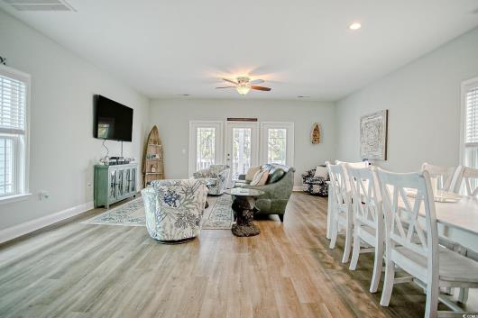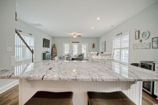 Located just steps from the ocean in desirable Surfside Beach, this stunning 5-bedroom, 6.5-bath raised beach home offers the perfect blend of luxury and coastal charm. Featuring an open floor plan, granite countertops, front and back balconies, and spacious living areas, this home is ideal as a primary residence or a high-performing short- or long-term rental. Enjoy outdoor living with a private pool and your own putting green, all just a short stroll from the sand—true beachside living at its best!